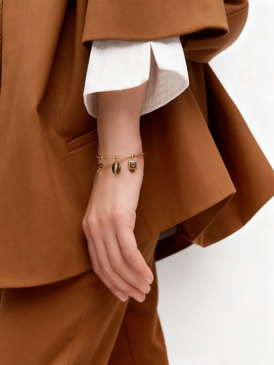 We use high-quality materials designed for everyday wear. Most of our pieces are crafted from 18k Gold Vermeil (a thick layer of 18k solid gold on Sterling Silver) or 316L Stainless Steel with PVD gold plating. This ensures they are hypoallergenic, water-resistant, and tarnish-free.